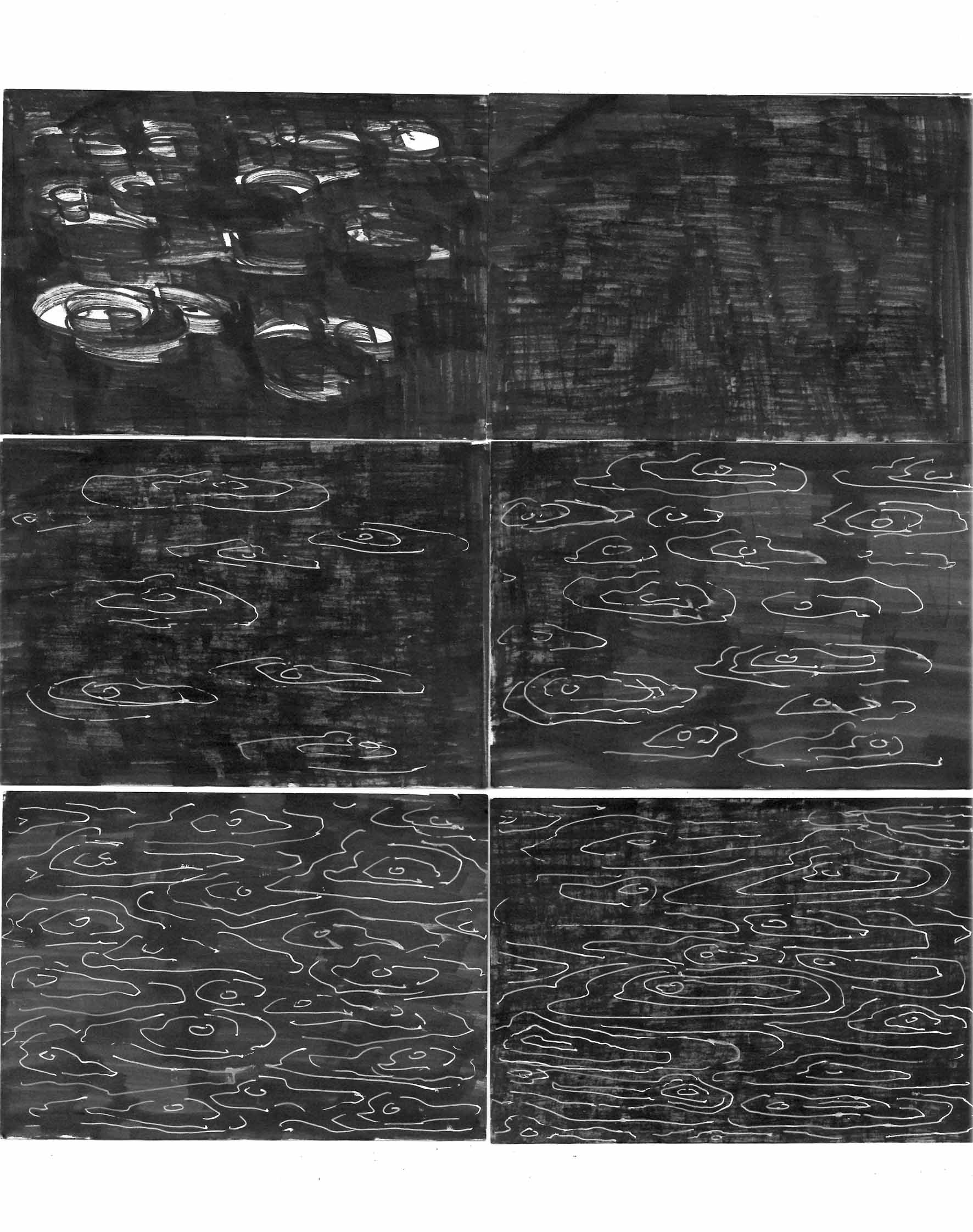 On a rainy day, maybe inspired by the sound of raindrops, I suddenly had an idea to make an animation about rain. I used three woodblocks to shoot the stop-motion animation and told a story with these blocks. In the first beginning, I coated the whole blocks with black printing ink and carved the story on the blocks based on the pictures taken with each frame. The convexities on the blocks would be on the decrease and disappeared completely in the end.
